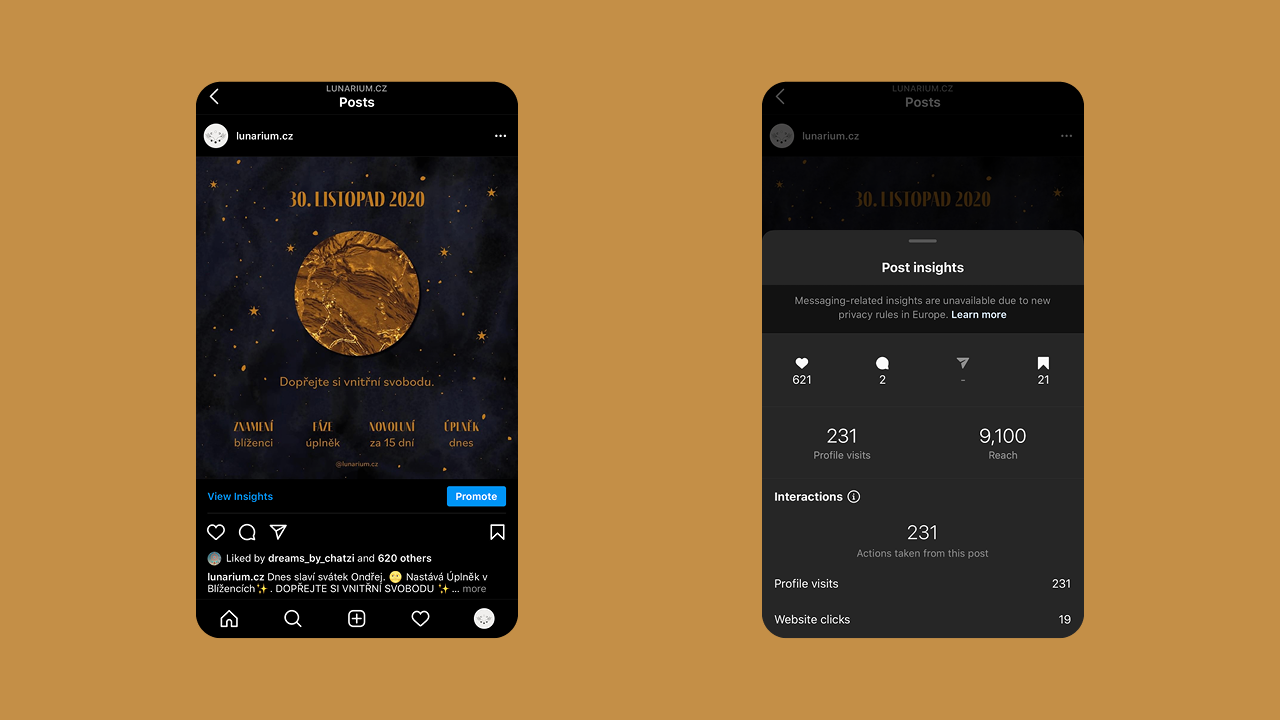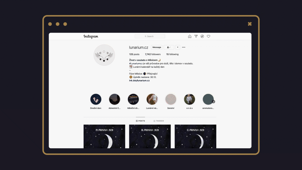 is a Czech project that shares daily lunar phases and helpful tips on health, mindfulness and wellness. I created designs for their daily posts and animations for social media channels.